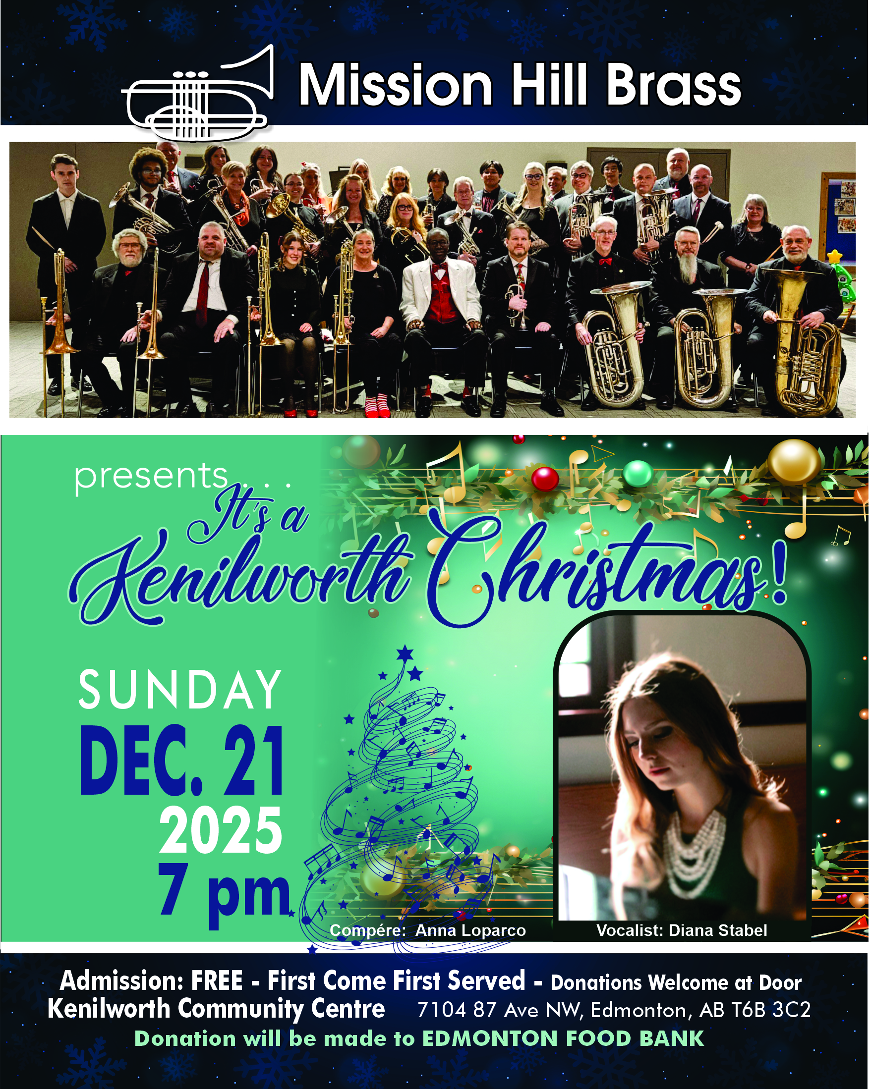 Join us for a festive evening of holiday music and community spirit. Doors open at 6:30pm, and admission is free. There will be some fun door prizes! Bring your family, meet your neighbours, and enjoy a warm and welcoming night to kick off the season.”
